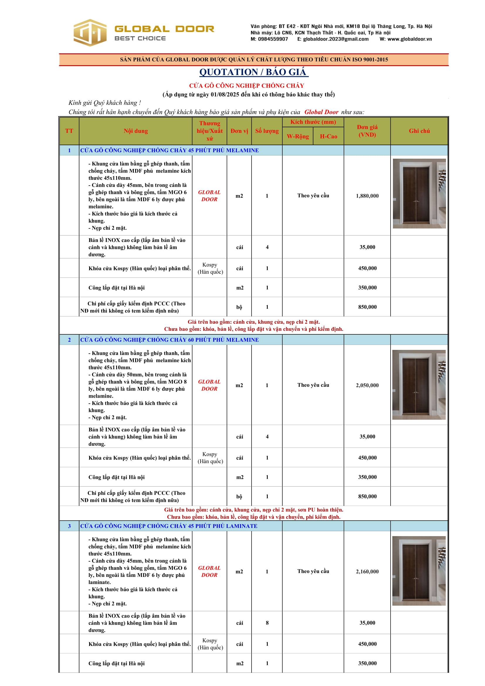 BÁO GIÁ CỬA GỖ CN HDF PHỦ MELAMIN VÀ LAMINATE