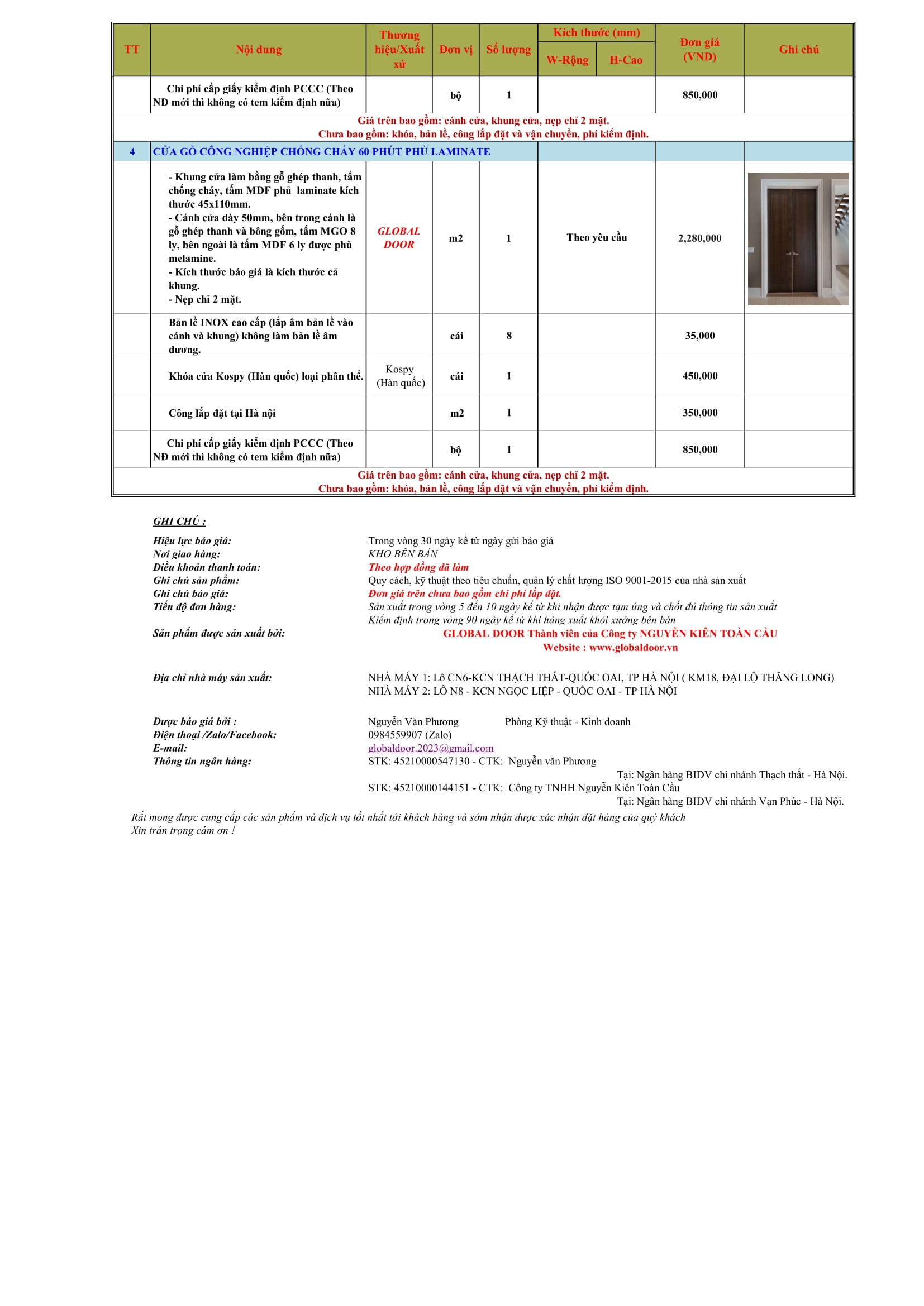BÁO GIÁ CỬA GỖ CN CHỐNG CHÁY
