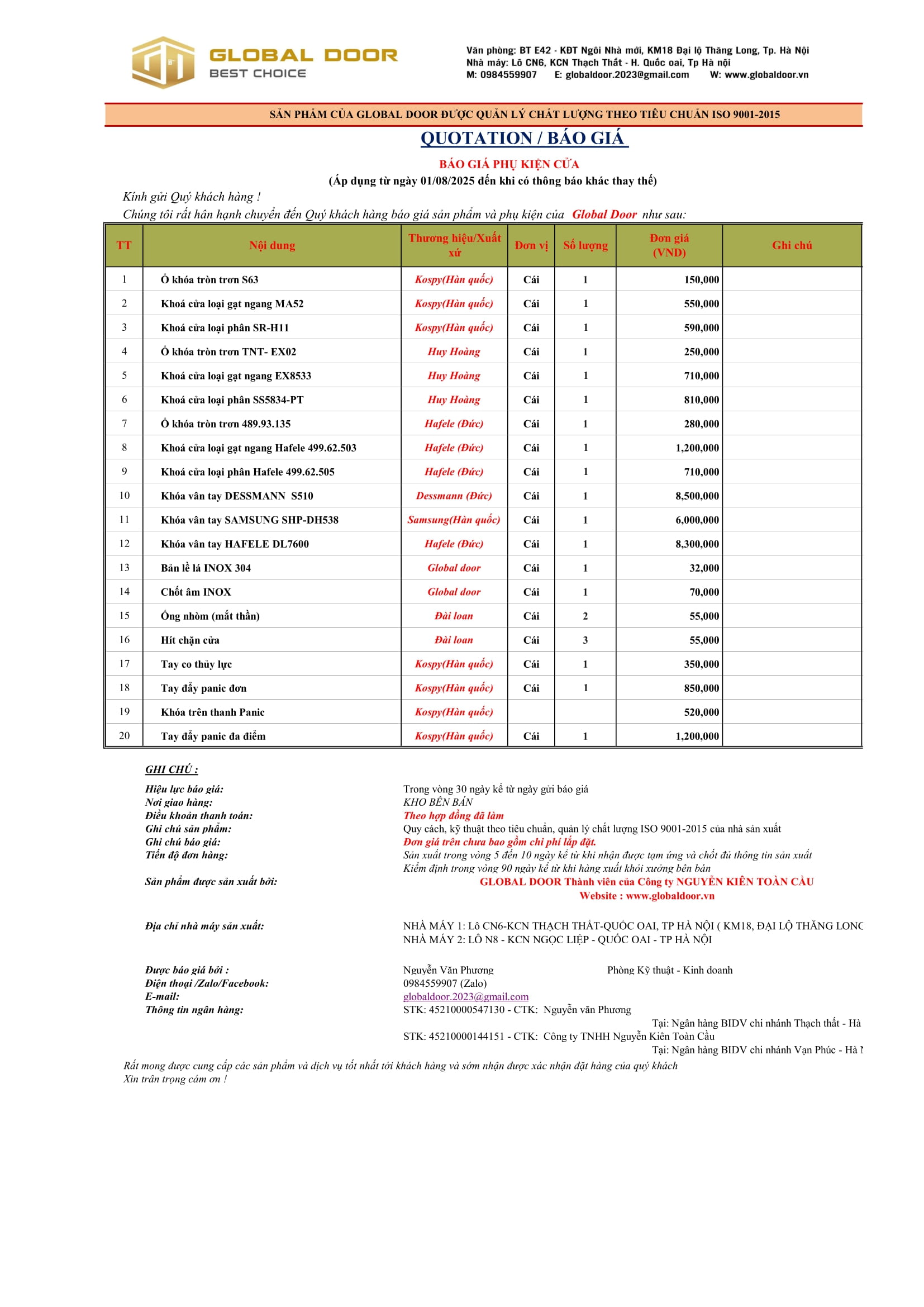 BÁO GIÁ PHỤ KIỆN CỬA GỖ