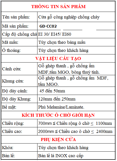 Nếu bạn đang tìm kiếm một giải pháp vừa đảm bảo tính thẩm mỹ, vừa mang lại sự an toàn tuyệt đối, thì tôi muốn giới thiệu một sản phẩm đã giải quyết được trăn trở này: cửa gỗ chống cháy 02 - GD-CC02.