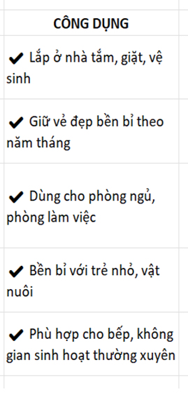 Giá hợp lý: Rẻ hơn nhiều so với gỗ tự nhiên, mà lại bền gấp nhiều lần.