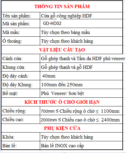 Cửa gỗ công nghiệp HDF GD-HD02 là lựa chọn hoàn hảo cho không gian nội thất cần sự sang trọng, bền chắc và chi phí hợp lý. Đây là sản phẩm phù hợp cho cả công trình dân dụng và thương mại.