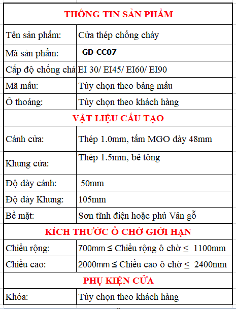 Nếu bạn đang tìm kiếm một giải pháp vừa đảm bảo tính thẩm mỹ, vừa mang lại sự an toàn tuyệt đối, thì tôi muốn giới thiệu một sản phẩm đã giải quyết được trăn trở này: cửa thép đơn chống cháy. Đây là sự kết hợp hoàn hảo giữa vẻ đẹp hiện đại và khả năng chống cháy vượt trội. Trong đó, một "tác phẩm" mà tôi muốn đặc biệt nhấn mạnh là Cửa thép đơn chống cháy 07 - GD-CC07.