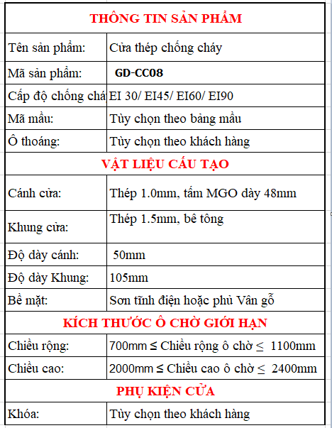 Điểm mạnh lớn nhất của GD-CC08 chính là khả năng chống cháy. Sản phẩm được cấu tạo từ: